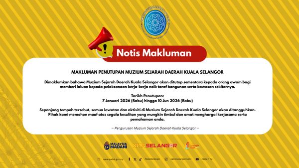 雪州马来习俗与文化遗产机构(PADAT)今日通过脸书发文告指出,关闭期间,博物馆内所有参观活动与相关项目将一律暂停。