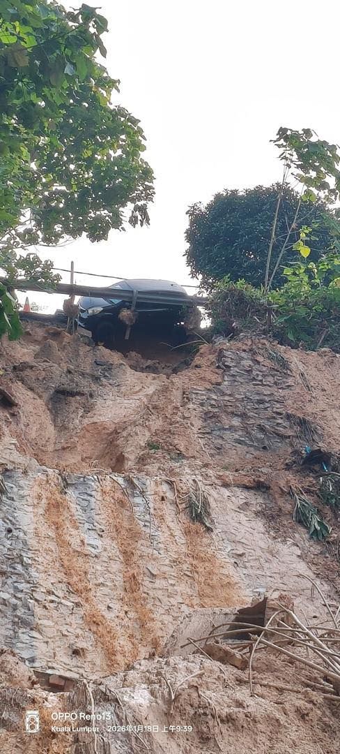 上述土崩事件于今早约9时发生,泥土与水流疑从英雄花园17路(Jalan Saga 17)方向涌出。事发后,相关路段已暂时封闭,受影响轿车也已被安全移走。