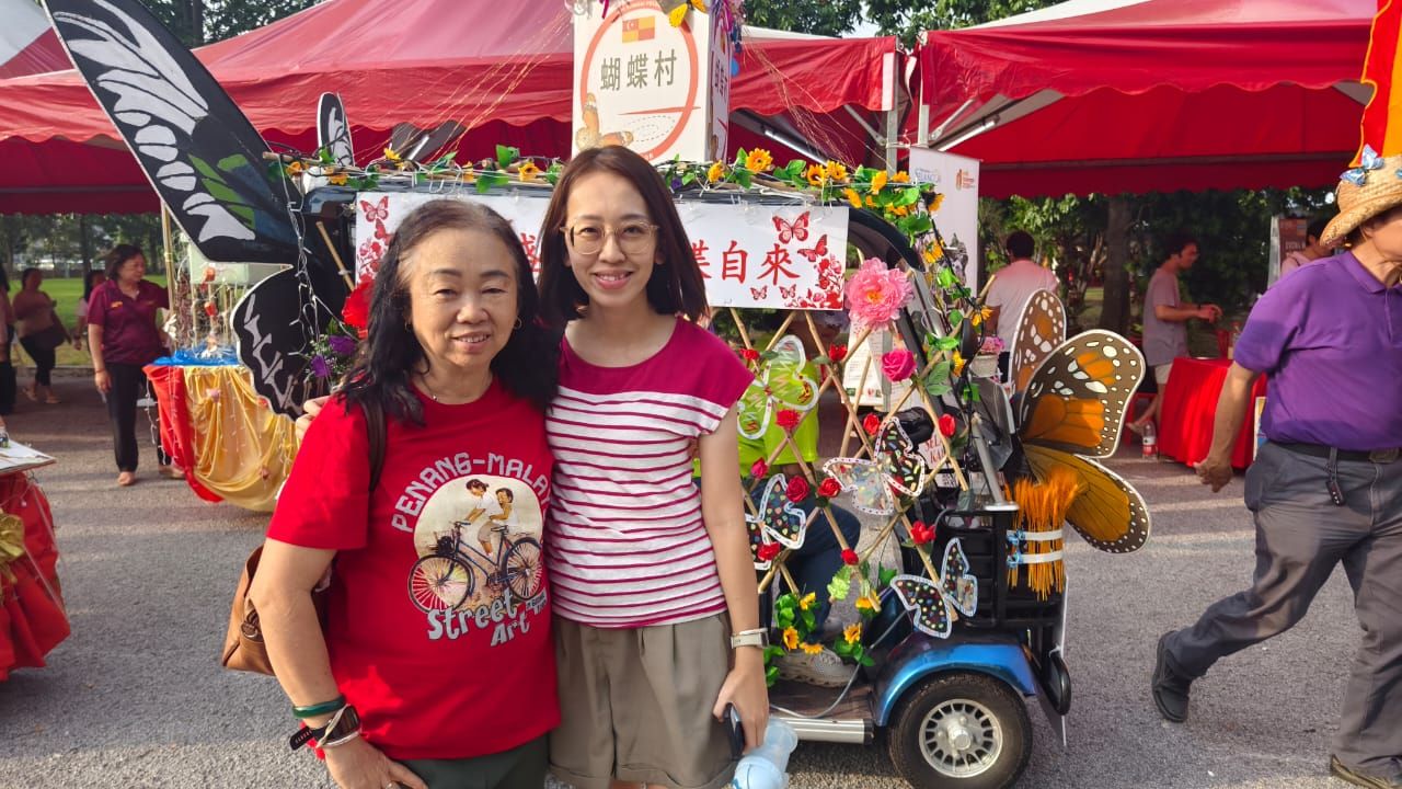 刚好遇到踩街活动,看见许多不同设计的特色花车,介绍各自新村的故事,包括美食和文创手艺,还有以百家布制作的热气球,宣传华人传统文化。