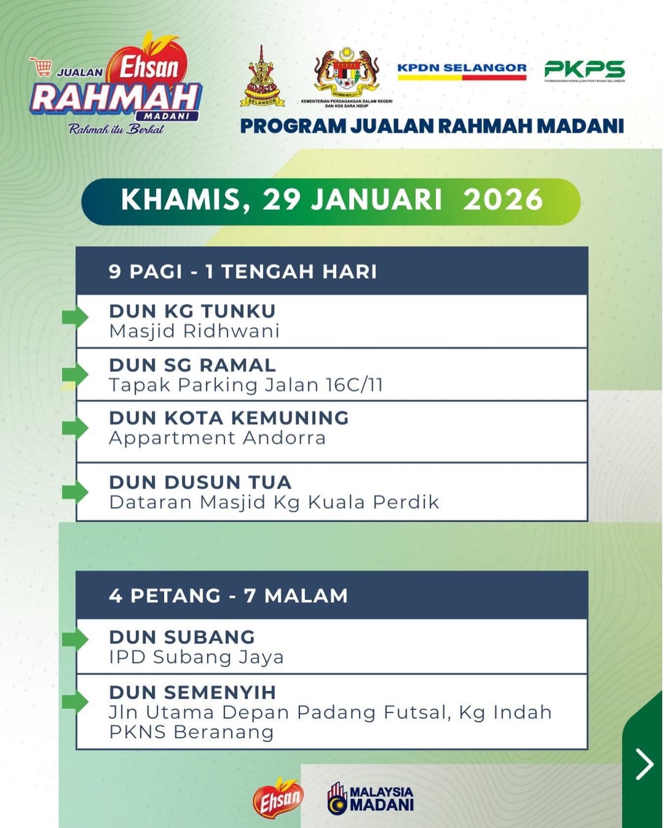 由雪州政府推出的“雪州人民市集”,如今与雪州国内贸易和生活成本局合作,易名为益山慈悯市集(Jualan Ehsan Rahmah)。
