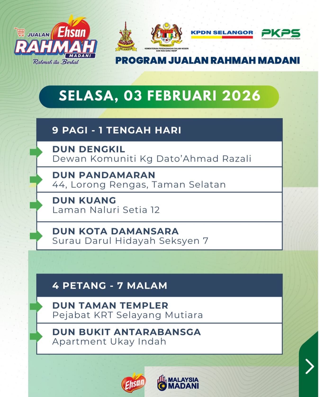 由雪州政府推出的“雪州人民市集”,如今与雪州国内贸易和生活成本局合作,易名为益山慈悯市集(Jualan Ehsan Rahmah)。