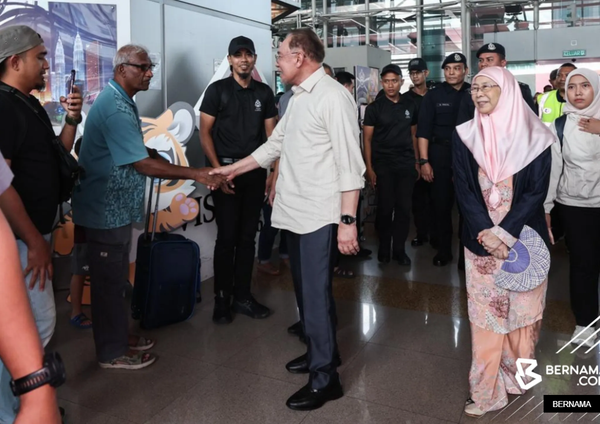 首相安华与家人于今日下午3时27分抵达新山中环,以便搭乘下午4时的ETS3双轨电动火车。