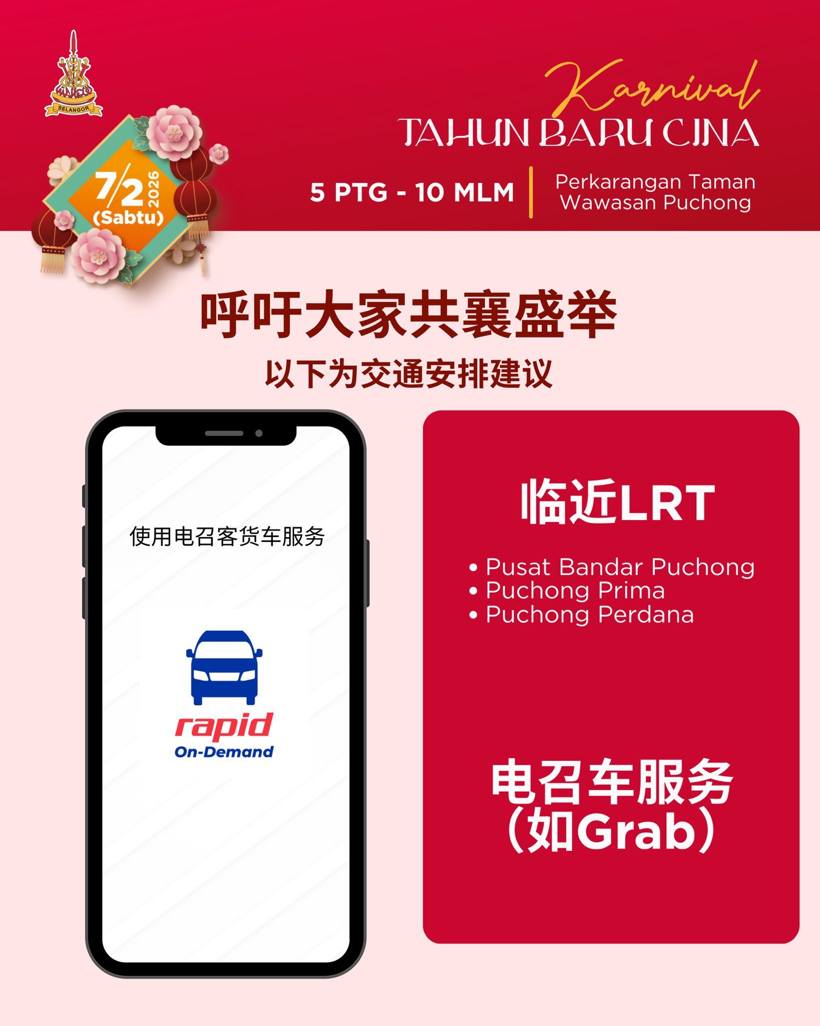 “如果选择搭乘电召客货车,可下载Rapid On Demand应用程序后预订服务,或直接使用电召车(grab)前往目的地。”