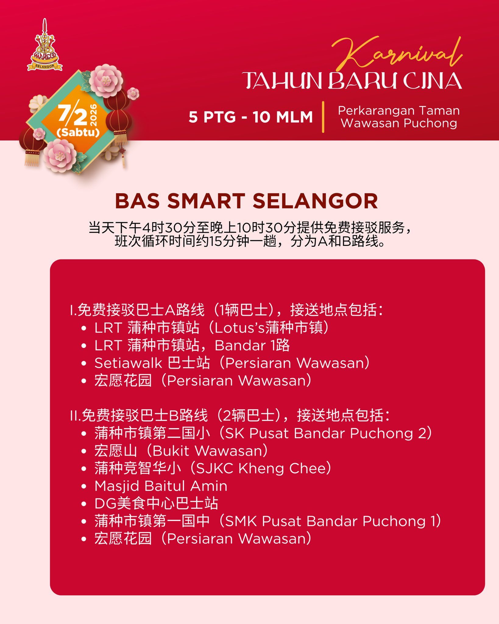 雪州精明巴士(下午4时30分至晚上10时30分提供免费接驳服务, 约15分钟一趟,分为A和B路线)