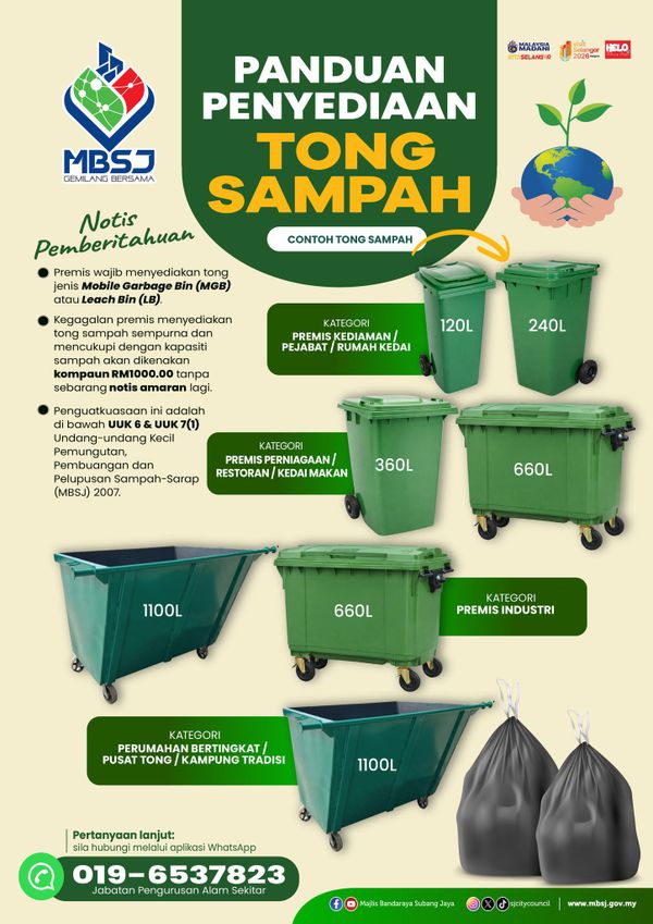 (莎阿南25日讯)梳邦再也市政厅(MBSJ)展示住家与工商业场所的垃圾桶指南,方便大家更有效的处理垃圾问题。