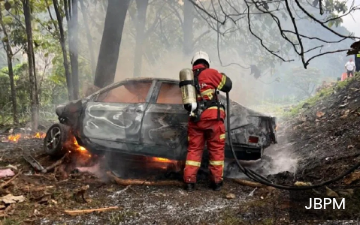 (怡保4日讯)南北大道北上方向昨日(4日)下午发生车撞大树后起火事故,男司机来不及逃生被烧死。