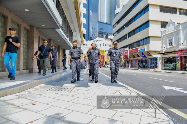 (莎阿南11日讯)马来西亚移民局(JIM)拉大队在吉隆坡西冷路(Jalan Silang)展开特别规模的执法检查行动,实地监控当地外籍人士的身份状态。