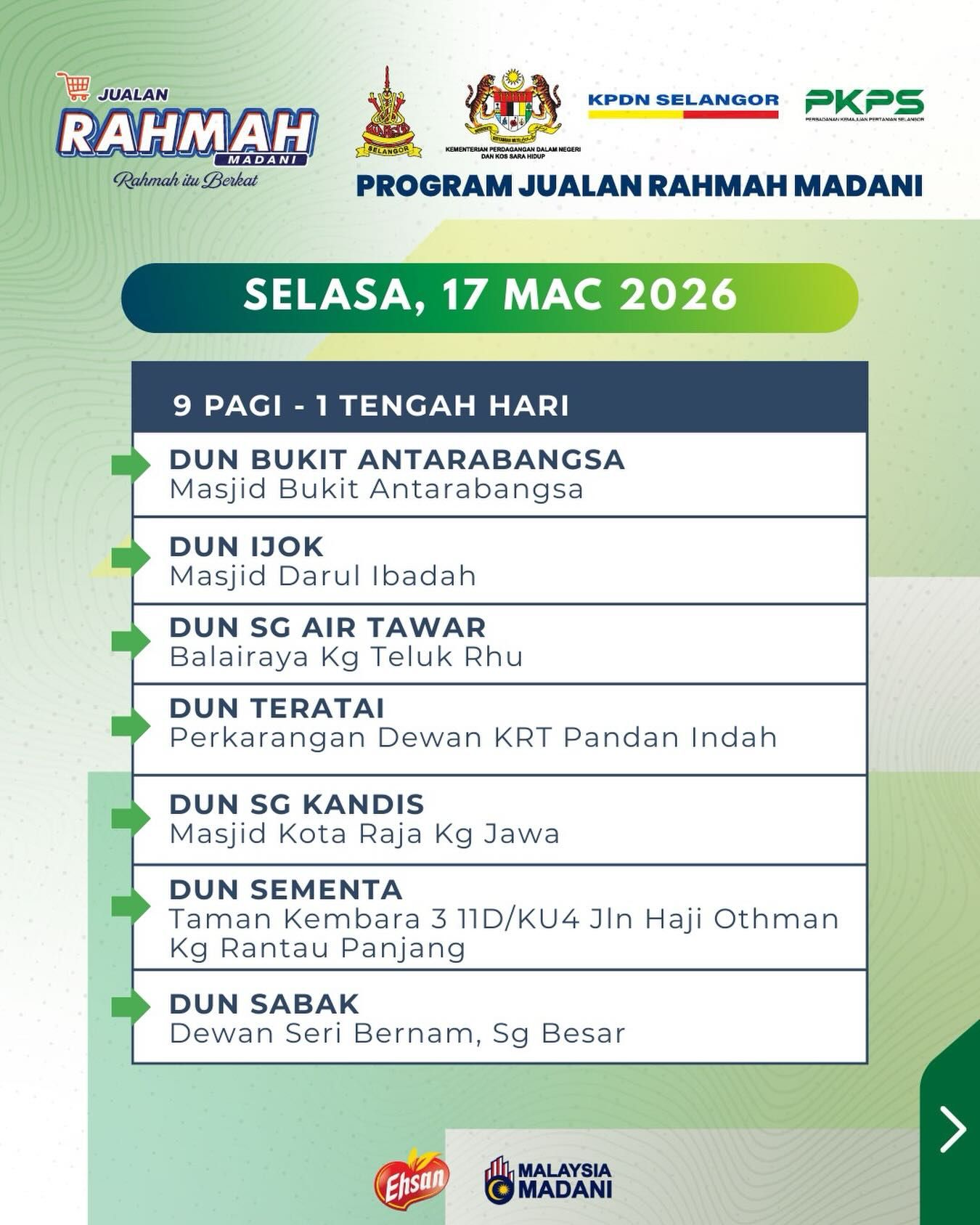 由雪州政府推出的“雪州人民市集”,如今与雪州国内贸易和生活成本局合作,易名为益山慈悯市集(Jualan Ehsan Rahmah)。