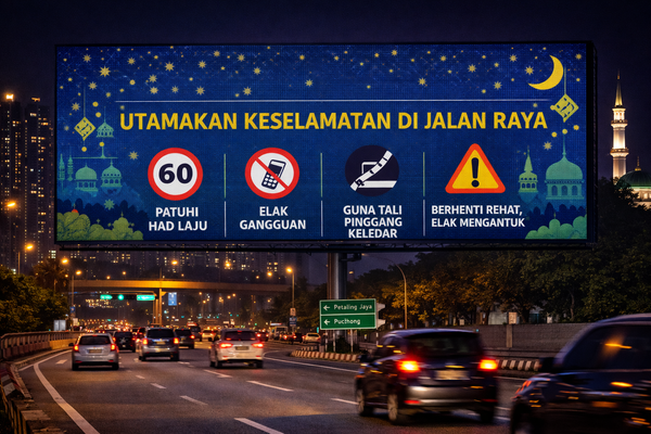 他表示,这项与地方政府合作的举措旨在更广泛地向公众传递安全提醒,尤其是在开斋节期间交通流量增加的情况下。