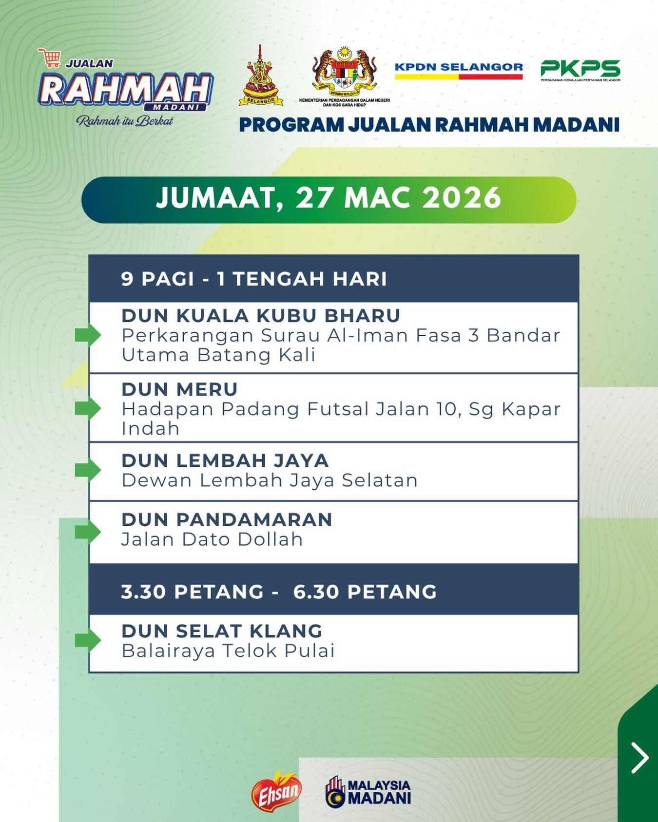 由雪州政府推出的“雪州人民市集”,如今与雪州国内贸易和生活成本局合作,易名为益山慈悯市集(Jualan Ehsan Rahmah)。