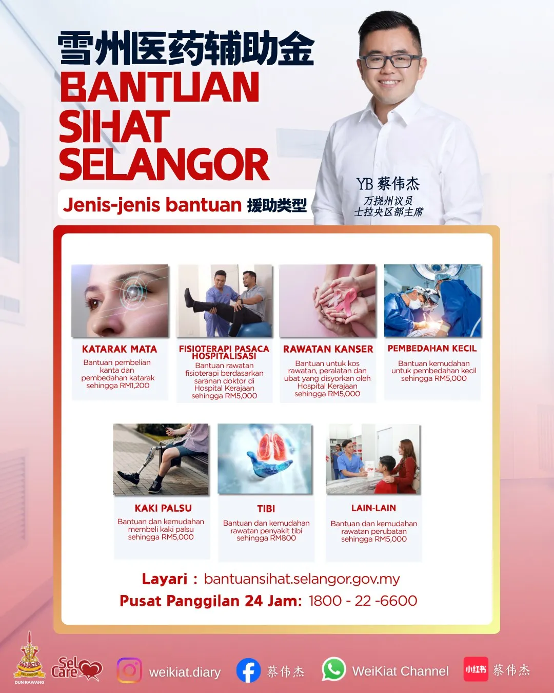 “昨天分享后,我们收到不少询问关于健康援助计划。简单来说,这是由雪州政府推出的一项援助计划,主要是帮助减轻人民的医疗费用负担。”