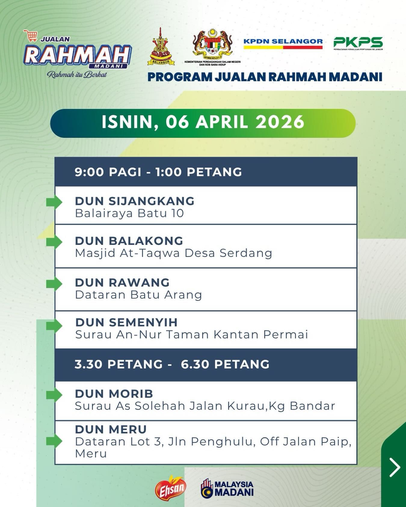 由雪州政府推出的“雪州人民市集”,如今与雪州国内贸易和生活成本局合作,易名为益山慈悯市集(Jualan Ehsan Rahmah)。