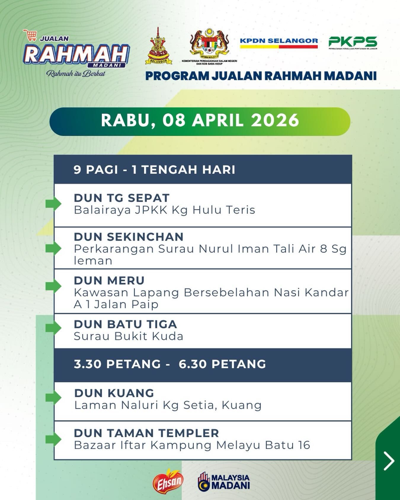 由雪州政府推出的“雪州人民市集”,如今与雪州国内贸易和生活成本局合作,易名为益山慈悯市集(Jualan Ehsan Rahmah)。