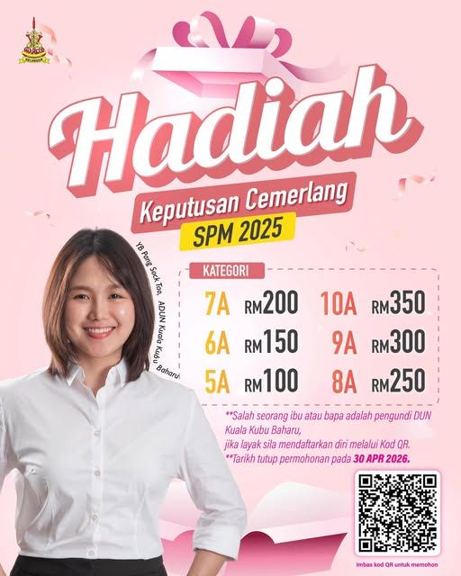 (莎阿南10日讯)凡在2025年马来西亚教育文凭考试(SPM)中考获5A或以上佳绩的新古毛区学生,即日起可以申请由新古毛区州议员彭小桃所提供的奖励金。