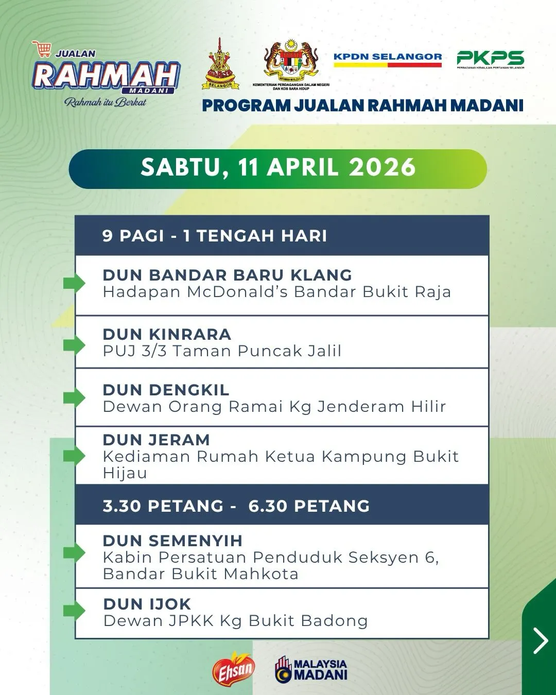 由雪州政府推出的“雪州人民市集”,如今与雪州国内贸易和生活成本局合作,易名为益山慈悯市集(Jualan Ehsan Rahmah)。