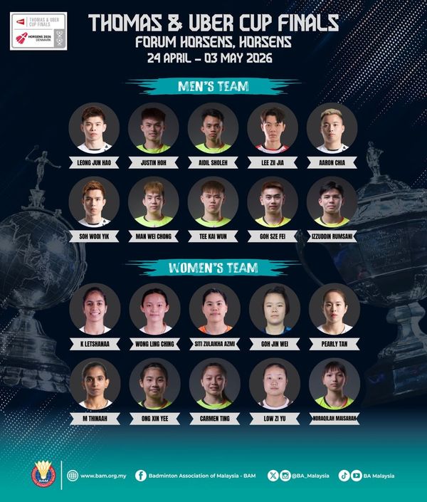 马来西亚羽毛球总会(BAM)今日发文告宣布,这位奥运会铜牌得主将与梁峻豪、贺首维和另一名职业球员埃迪索列组成队伍,参加男子单打比赛。