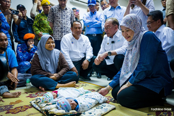 首相拿督斯里安华昨日访问沙巴,慰问幸福村火灾灾民,并宣布将通过教育部为12所受灾学校的454名学生提供300令吉的援金。