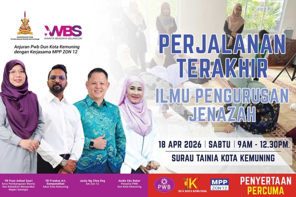 SHAH ALAM, 7 APRIL: Pusat Wanita Berdaya (PWB) DUN Kota Kemuning menganjurkan kursus pengurusan jenazah secara percuma 18 April ini.