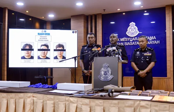 "Susulan itu, tiga lelaki warga Korea Selatan berusia antara 28 hingga 40 tahun ditahan. Polis turut merampas sepucuk pistol yang dipercayai tiruan yang digunakan untuk mengugut mangsa serta peralatan lain seperti tali dan pita pelekat," katanya.