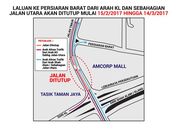 “Road users heading towards Amcorp Mall and in a similar direction, may continue onto the Federal Highway and take the flyover near PJ Hilton.